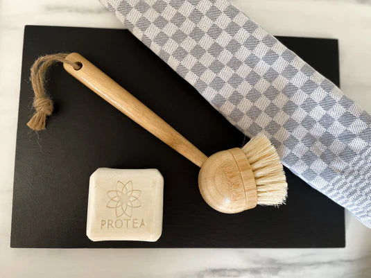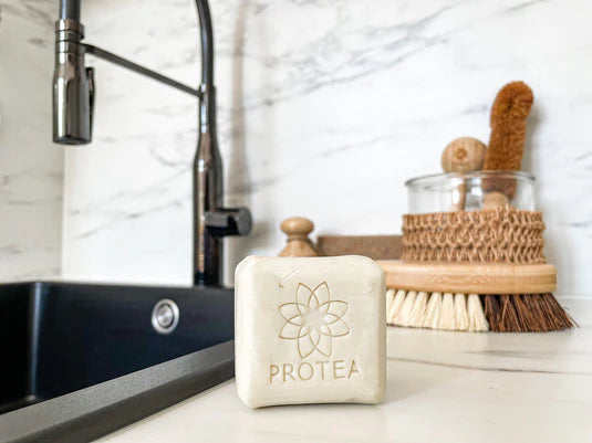 Die Protea Spül- und Haushaltsseife besteht ausschließlich aus wenigen natürlichen Inhaltsstoffen (siehe Zutatenliste) und ist dabei 100% vegan, plastik- und palmölfrei. Damit eignet sich die Seife nicht nur für zu Hause, sondern auch super für unterwegs z.B. beim Camping, da es die Umwelt nicht belastet.